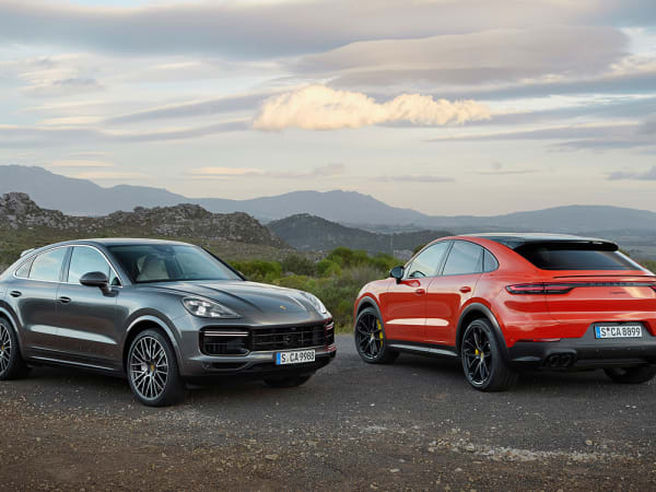 The 2020 Porsche Cayenne Coupe (right) and Cayenne Turbo Coupe are due in showrooms this fall with MSRPs starting at $75,300 and $130,100, respectively, plus $1,250 delivery.