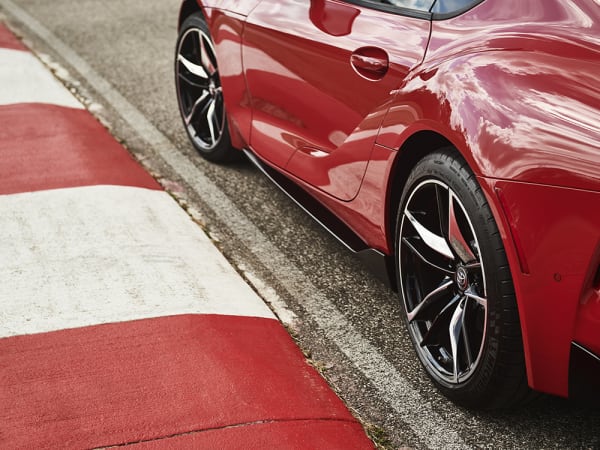 The Supra gets standard 19-inch forged alloy wheels and Michelin Pilot Super Sport tires. The rear tires (275/35R19) are wider than those in front (255/35R19) for superior grip.