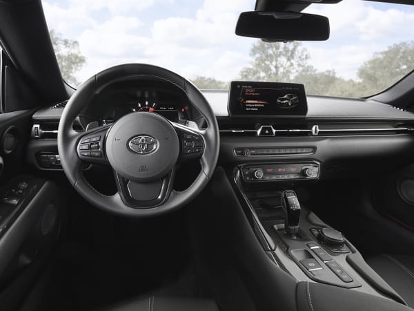 The 2020 Supra is powered by a 3.0-liter turbocharged I-6 delivering 335 horsepower, 365 pound-feet of torque, and a projected zero-to-60 time of 4.1 seconds, paired with an eight-speed automatic transmission. Japanese dealers will also get a 2.0 turbo edition.